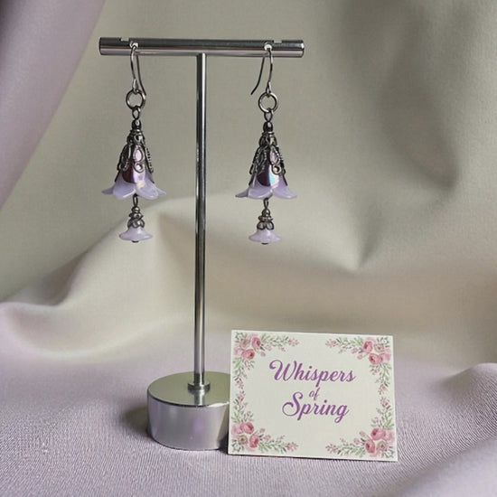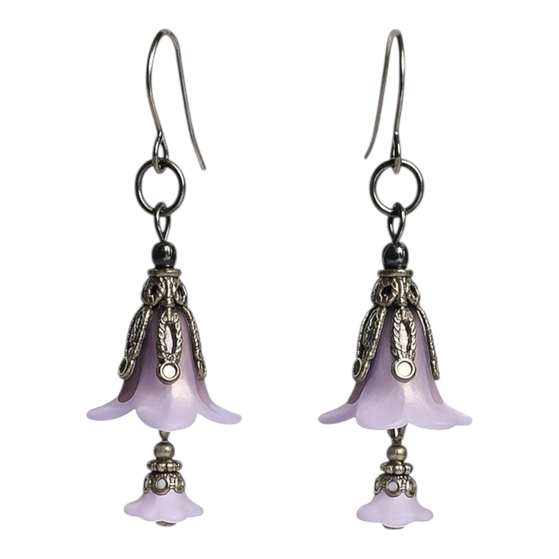 Lilac Bellflower Drop Earrings | Lightweight Lucite Flower Dangles, Antique Silver Accents, Stainless Steel Hooks | Cottagecore/Fairycore