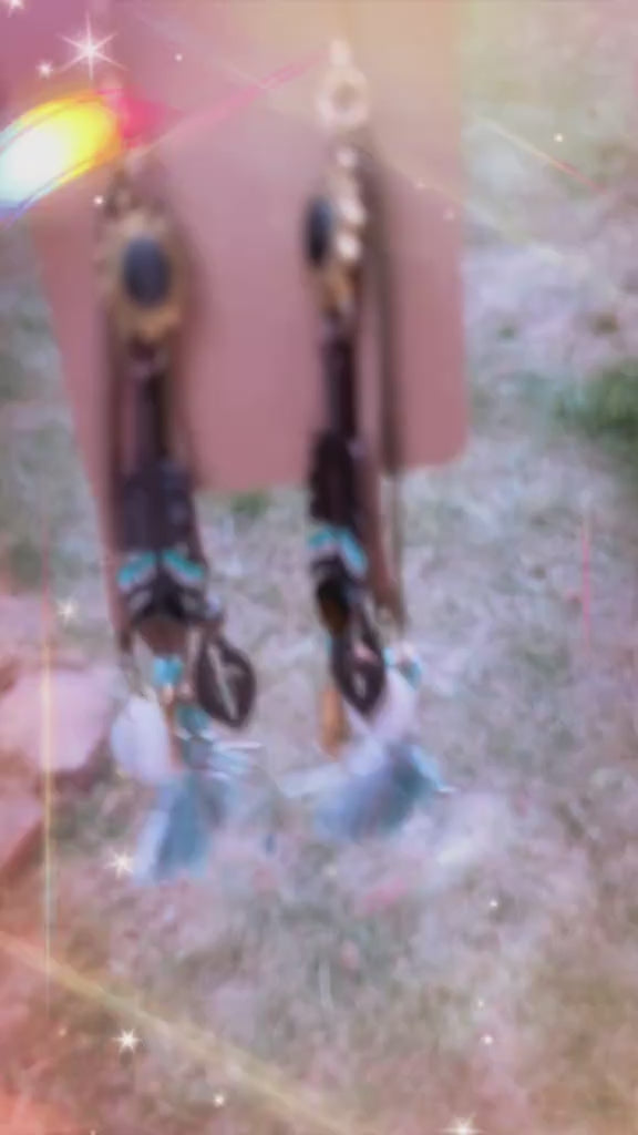 β¨ Bring a touch of wanderlust to your style with these Boho Spirit Tassel Earrings β Turquoise Dreams! Handmade with love π, these one-of-a-kind earrings feature layered antique bronze feathers, rustic chains, turquoise beads, natural shell accents, and playful blue tassels for that free-spirited vibe.