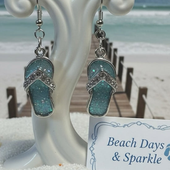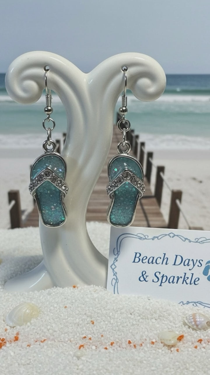 Flip-Flop Earrings | Aqua Resin & Crystal Sandal Dangles | Beach Vacation Jewelry 🩴🌊✨