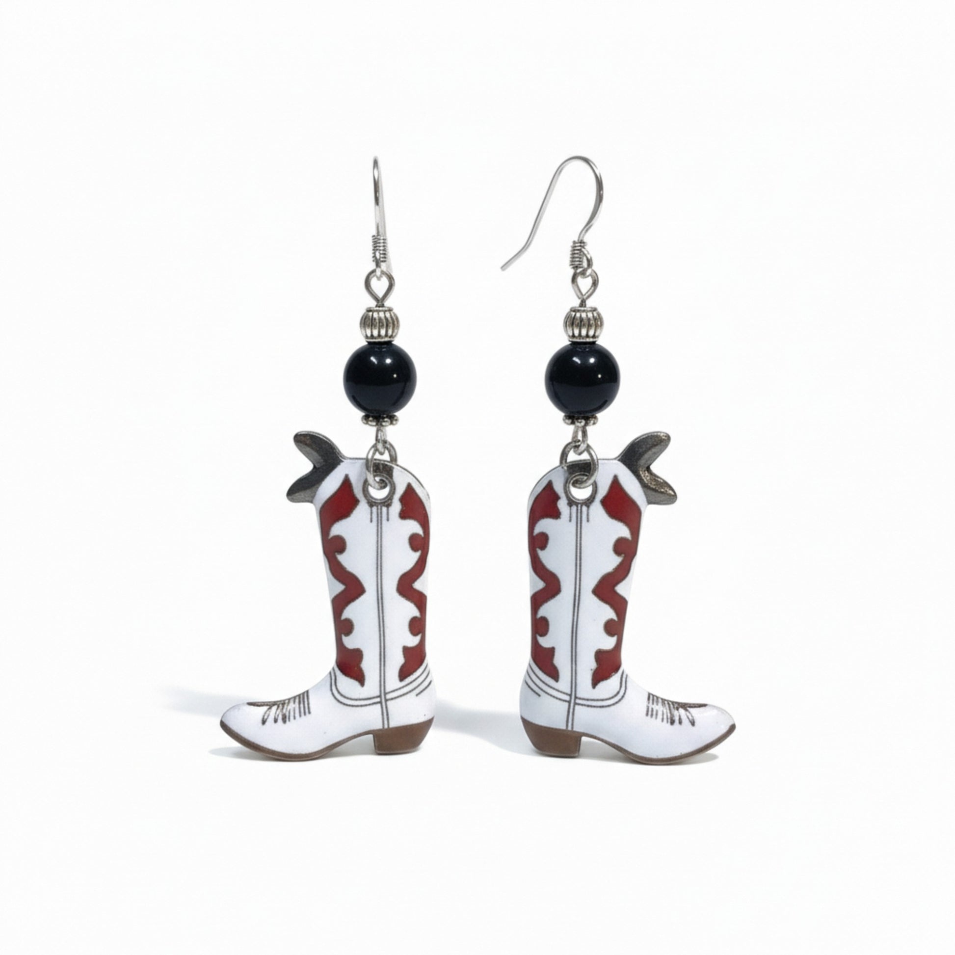 White Boots w/ Red Flame Stitch + Black Bead Detail 🔥🖤