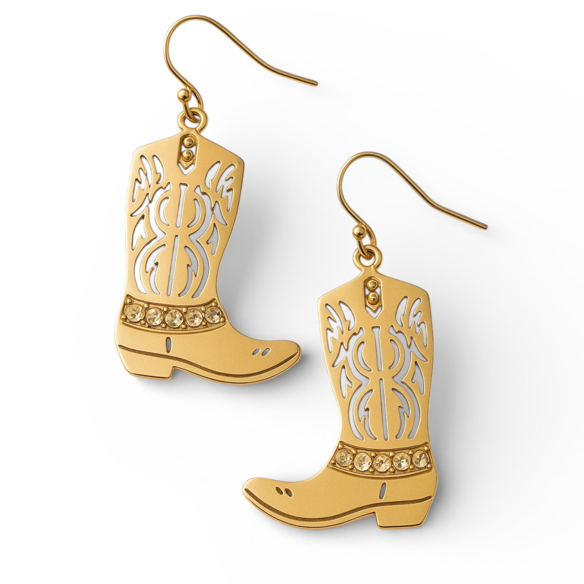 Golden Boots β Classic cowboy boots in metallic gold with engraved detail.