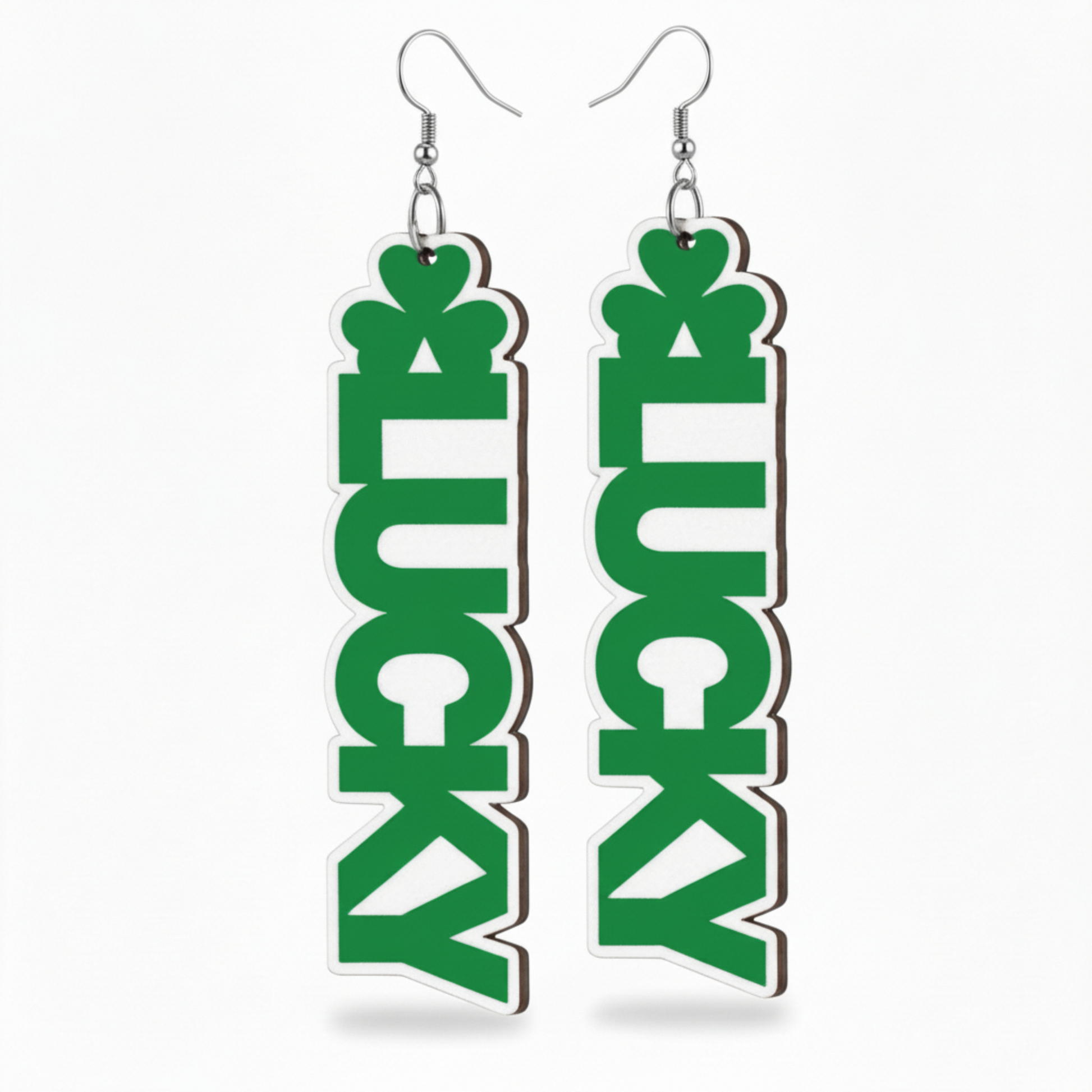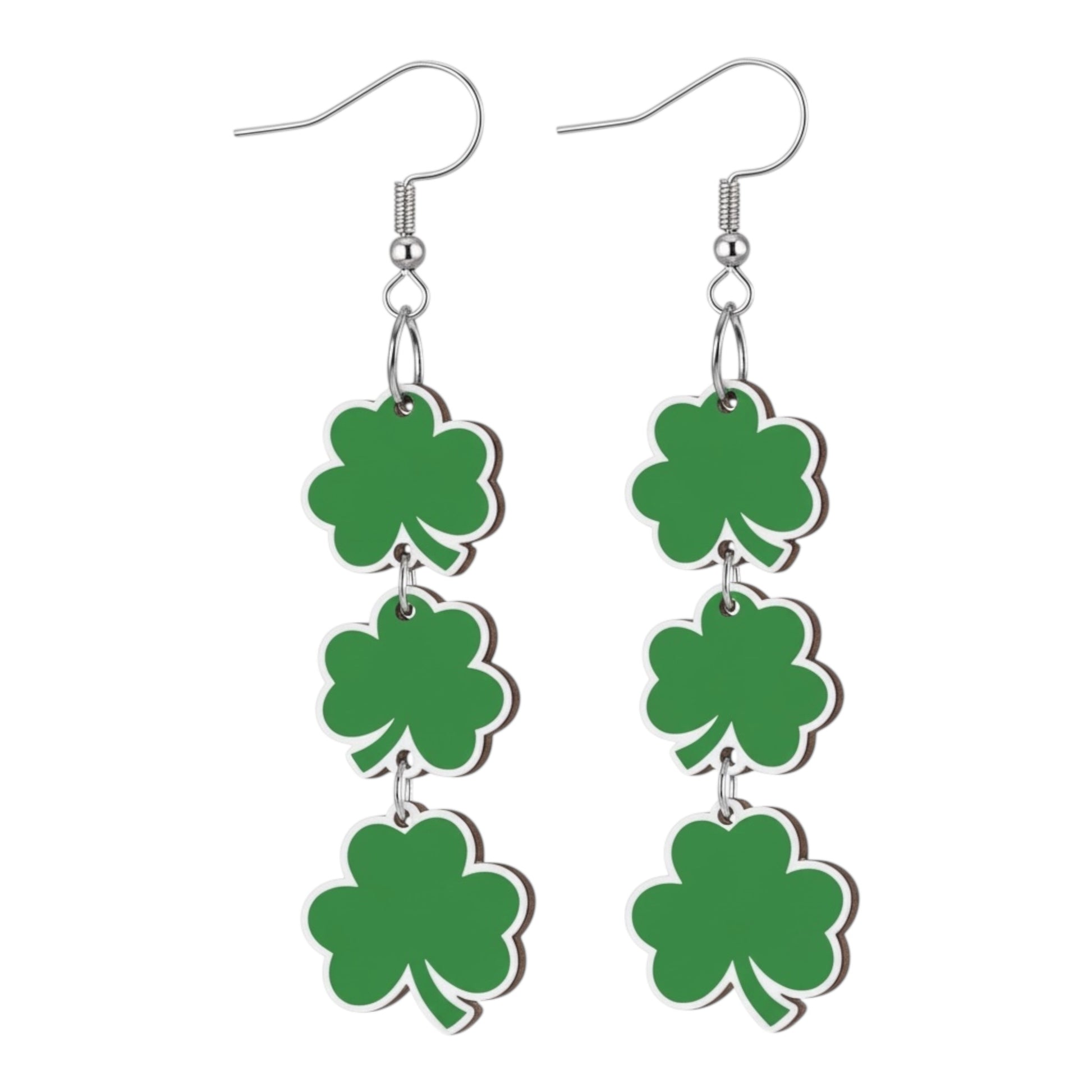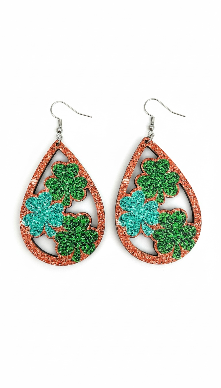 This listing features multiple festive variants including shamrocks, hearts, “lucky” designs, and layered textures—available in both post earrings and dangle styles so you can choose your perfect vibe.